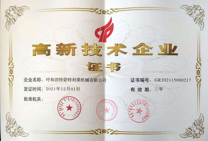 高新技術企業榮譽證書